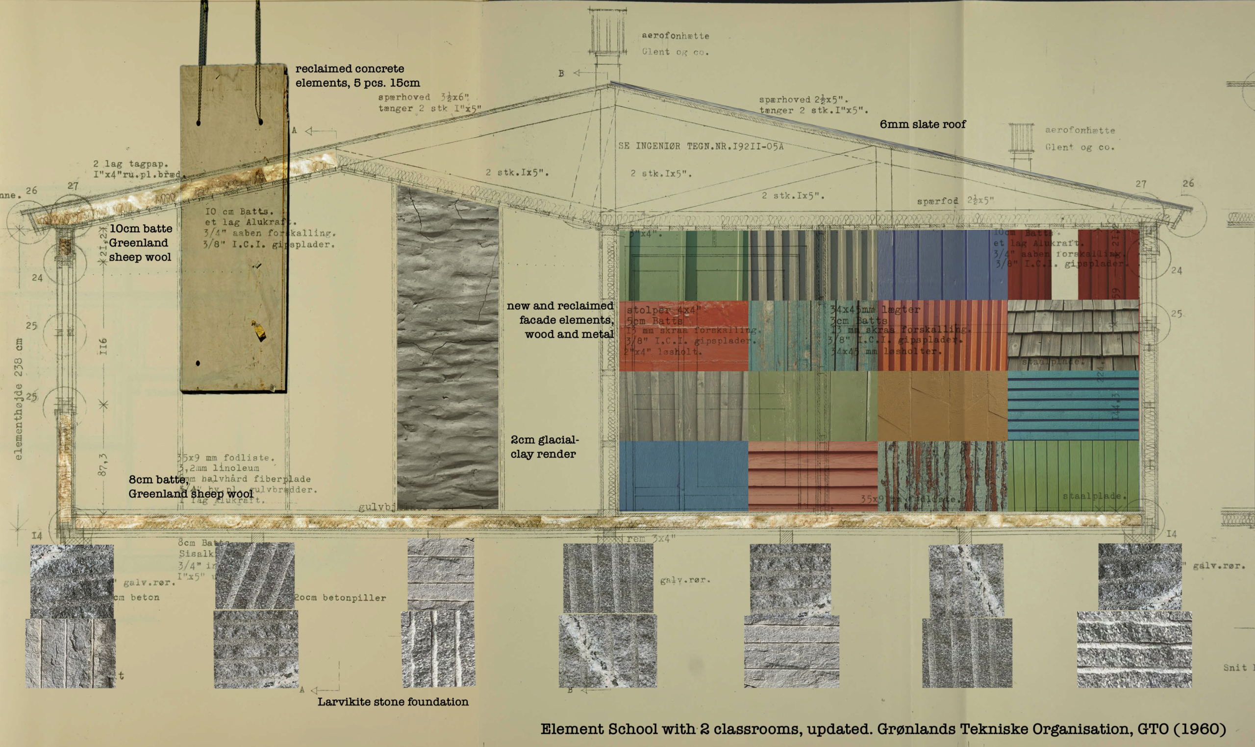 Can Greenland foster greater political and economic autonomy by rethinking its building strategies with a focus on local materials, including the possibility of load bearing stone? Using speculative collage, a survey of current technical challenges and historical research, this article revisits Greenland’s Technical Organisation (GTO) and asks whether the time has come for a new state laboratory for architecture.