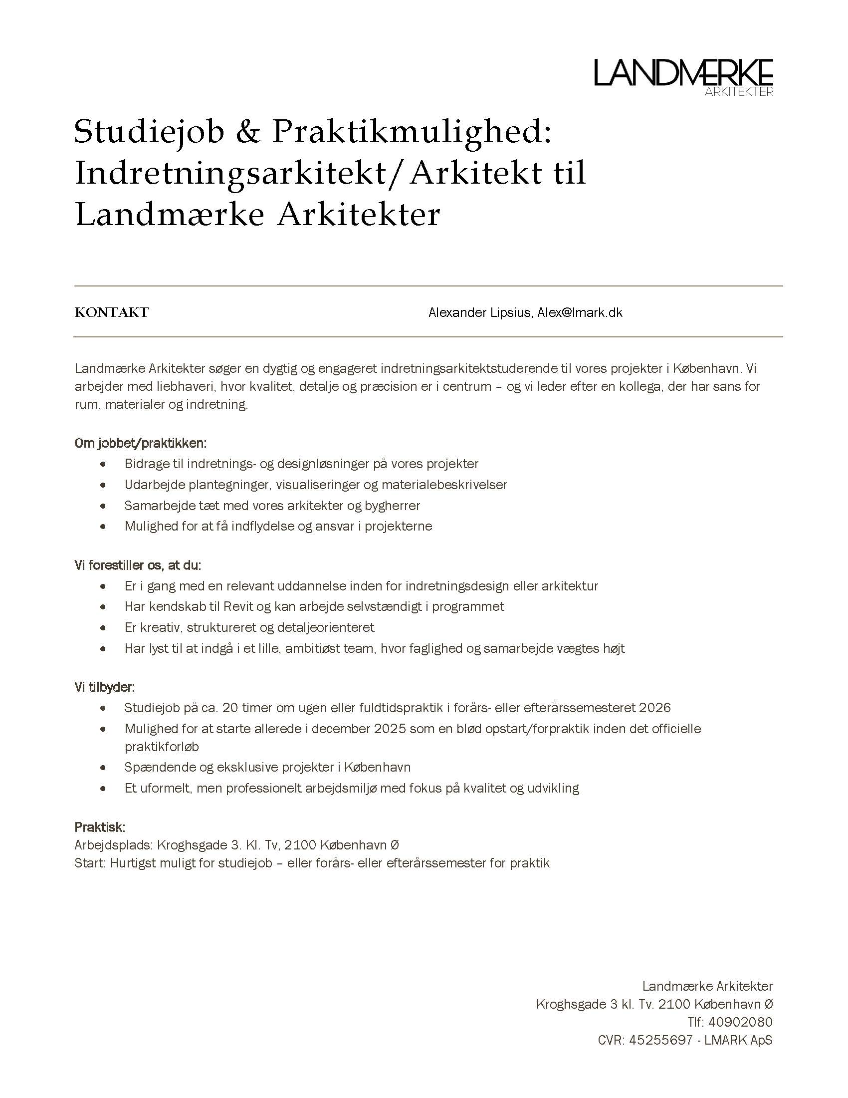 Student Job & Internship Opportunity: Interior Architect and Architects at Landmærke Arkitekter