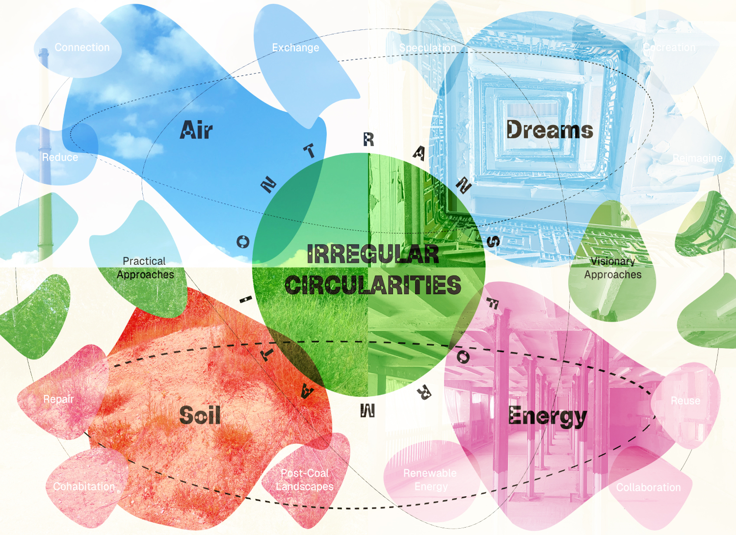 Under the title ‘Irregular Circularities’, the 10-day Summercamp will bring together different positions in Zeitz and Dessau-Roßlau (Germany) from various academics, architects, artists, designers, local actors, and students to collectively debate and practice visions for such regions in transition. The international summer camp is divided into four thematic areas: soil, energy, air and dreams. Through a series of hands-on workshops, experimental learning platforms, and keynote lectures, a set of multiscale possibilities will be explored to gain local, resource-efficient, and sustainable impulses for the former ZEKIWA area, the Zeitz locality, and beyond.