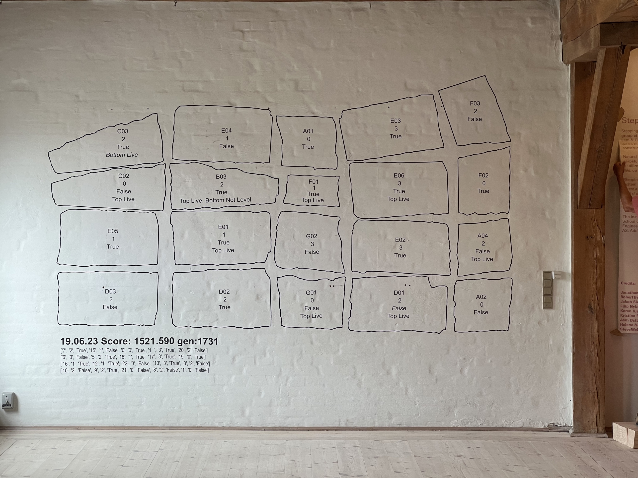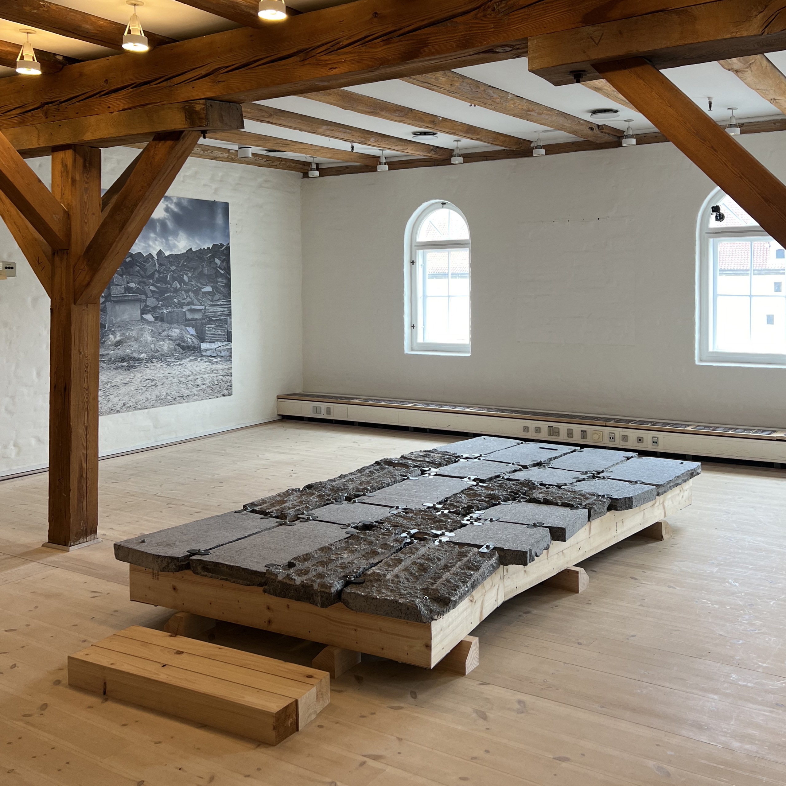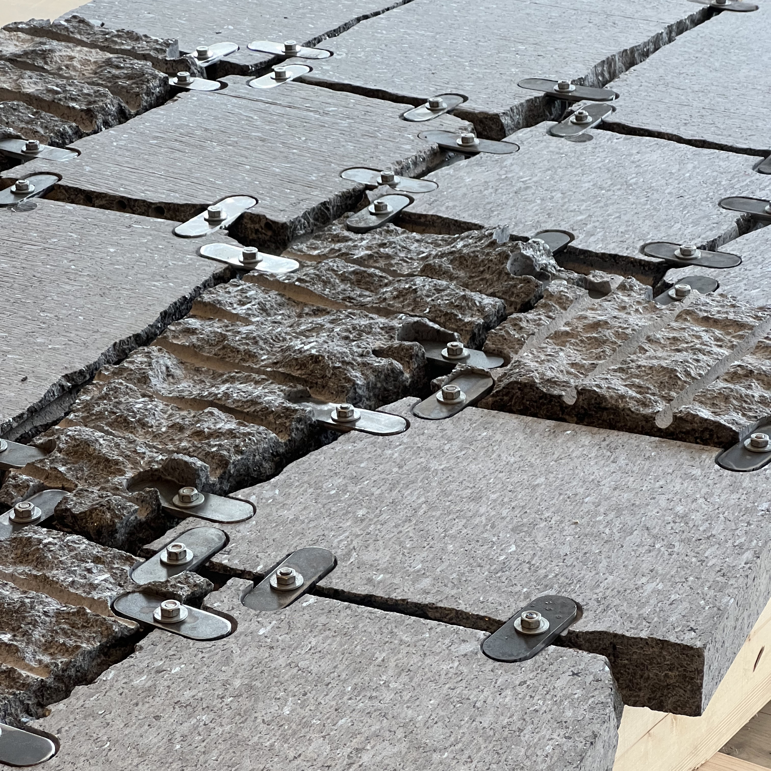 Stepping Stones was an installation by the Ecologies of Stone research group on display at the offices of Rønnow Leth & Gori and the Værksted for Arkitektur. It utilized low-processed, waste blocks of stone from Larvik, Norway – known as larvikite – to construct an experimental, full-scale structural floor.
